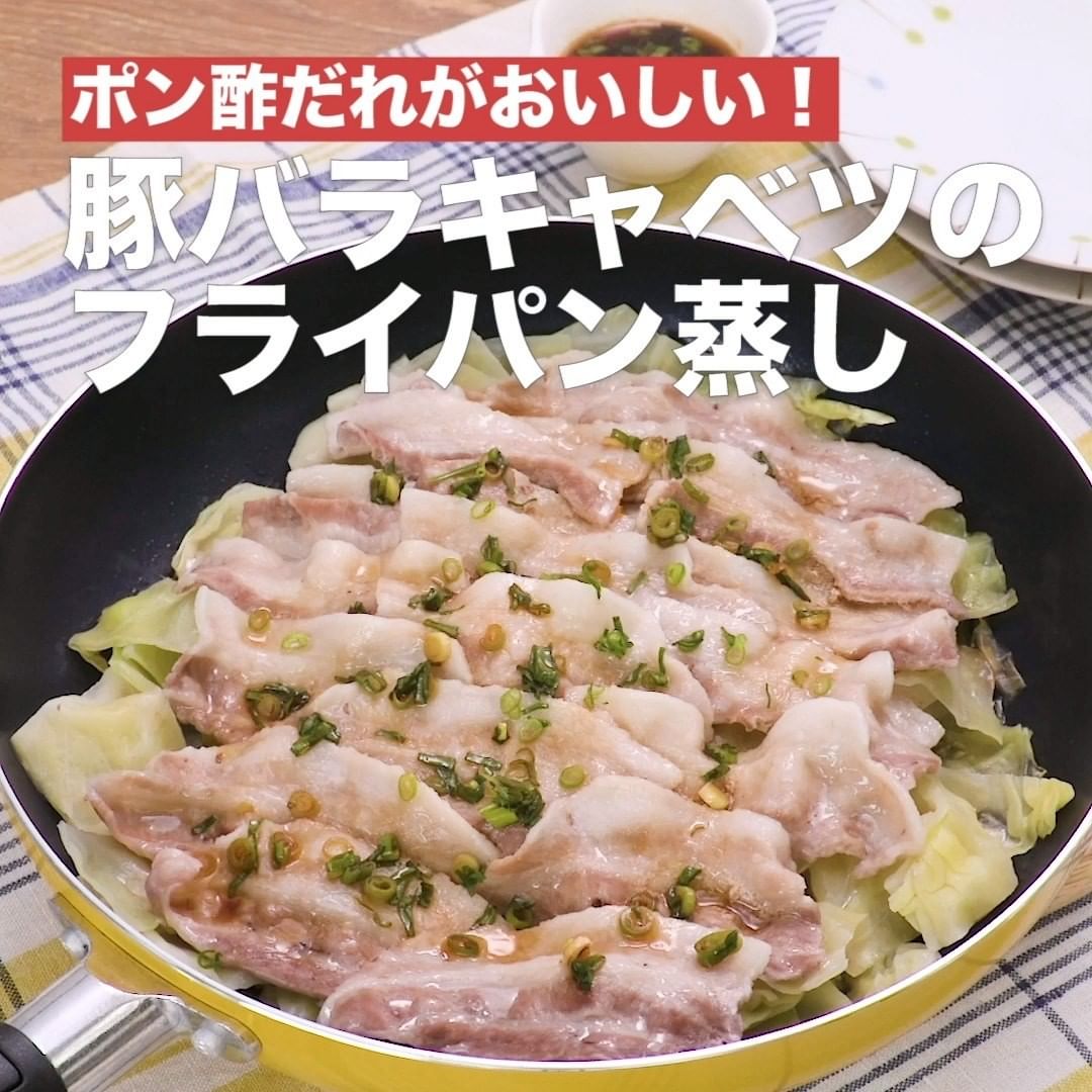 ③<ポン酢だれがおいしい!豚バラキャベツのフライパン蒸し>