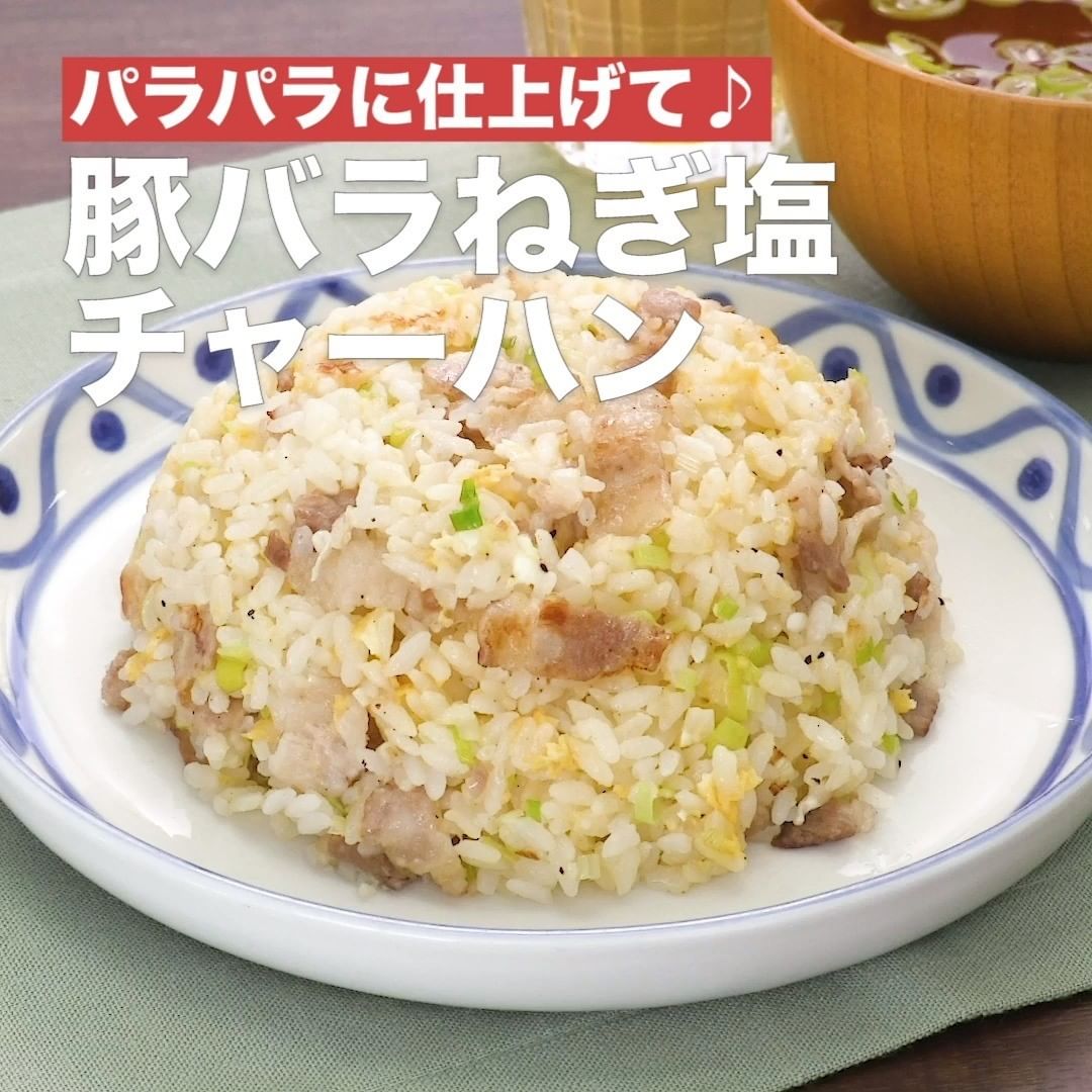 ⑦<パラパラに仕上げて♪豚バラねぎ塩チャーハン>