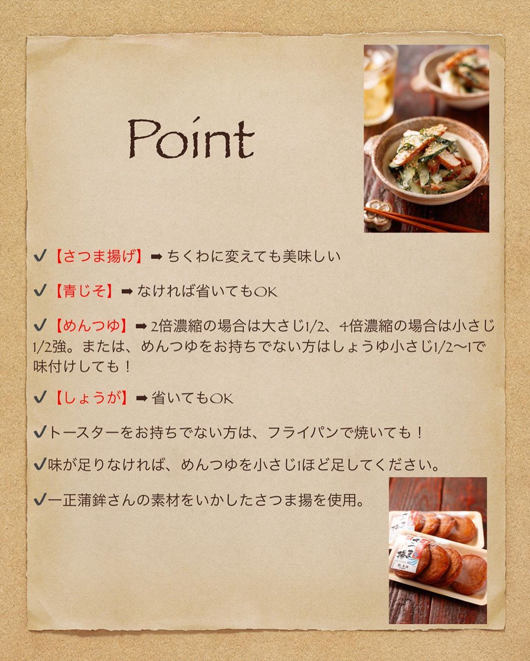 🔻代用食材/調味料/Point🔻