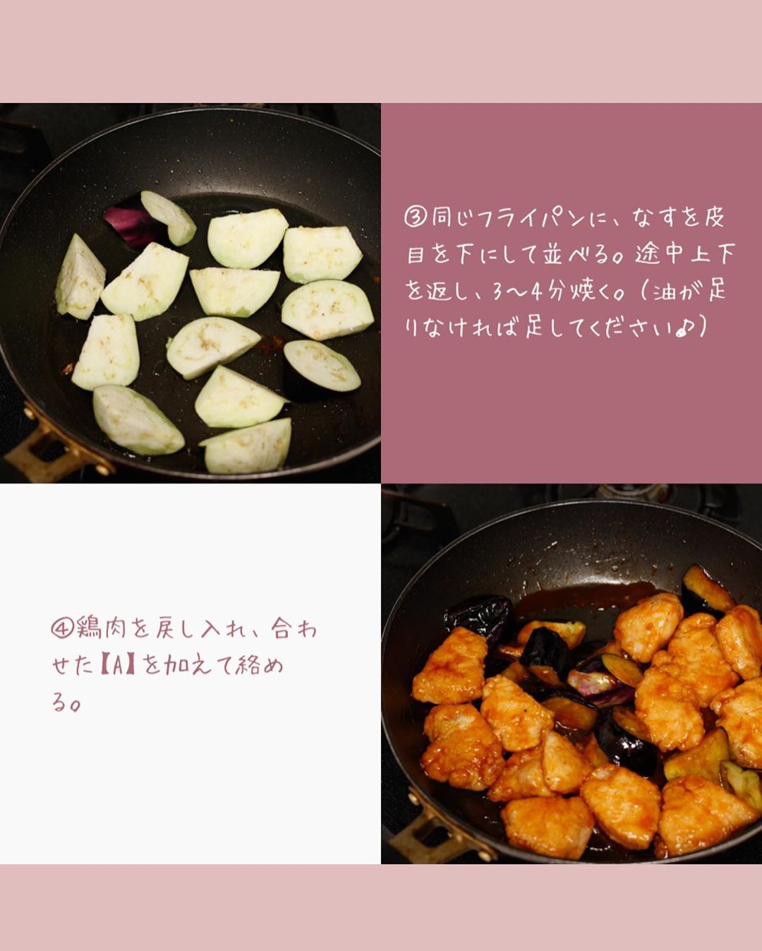 また、むね肉→なすの順に焼いて