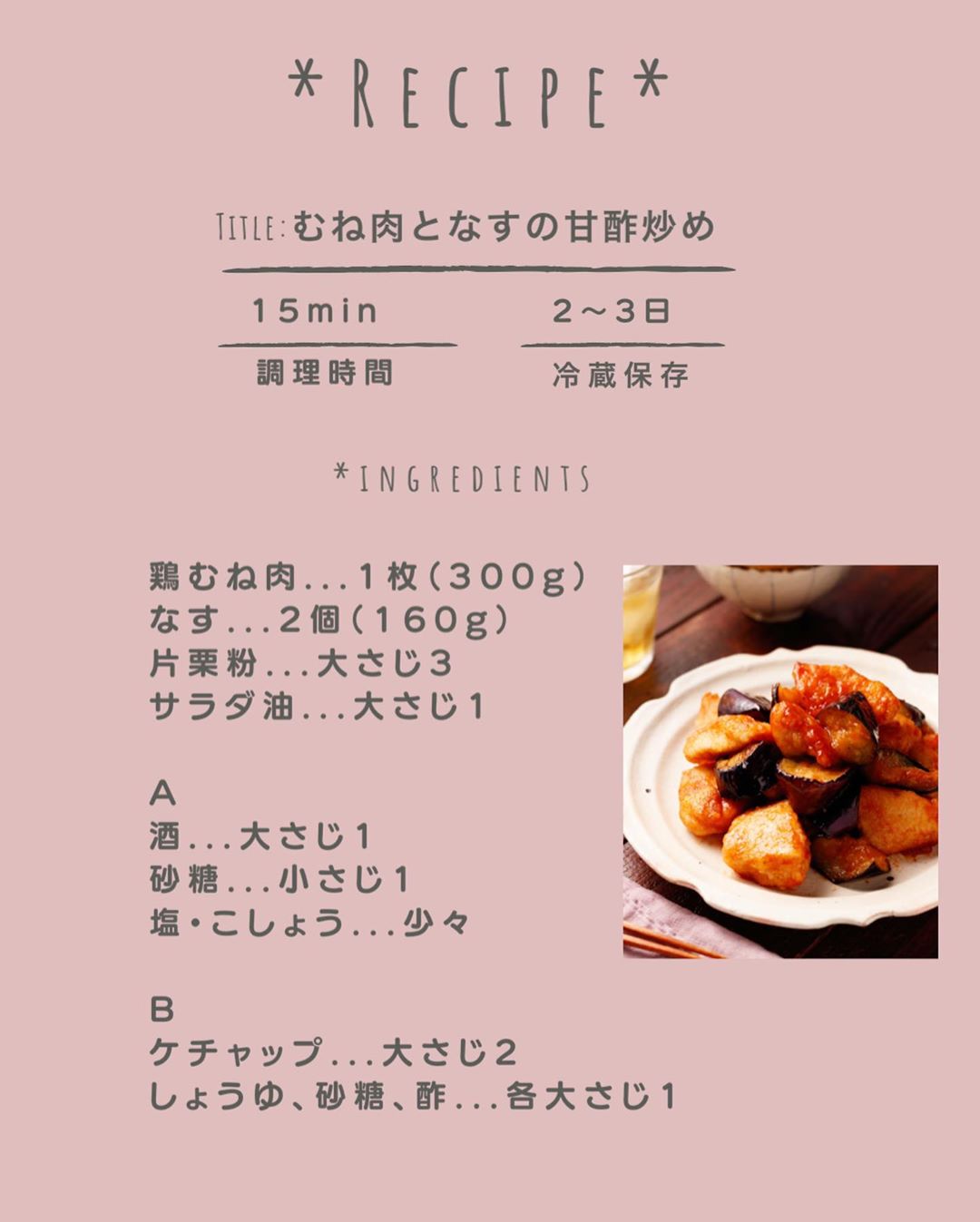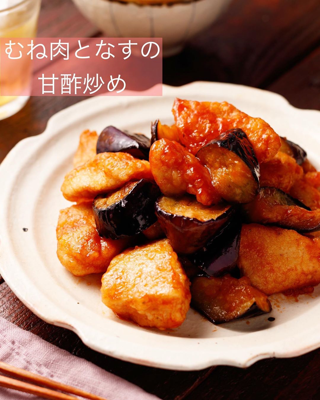 #むね肉となすの甘酢炒め