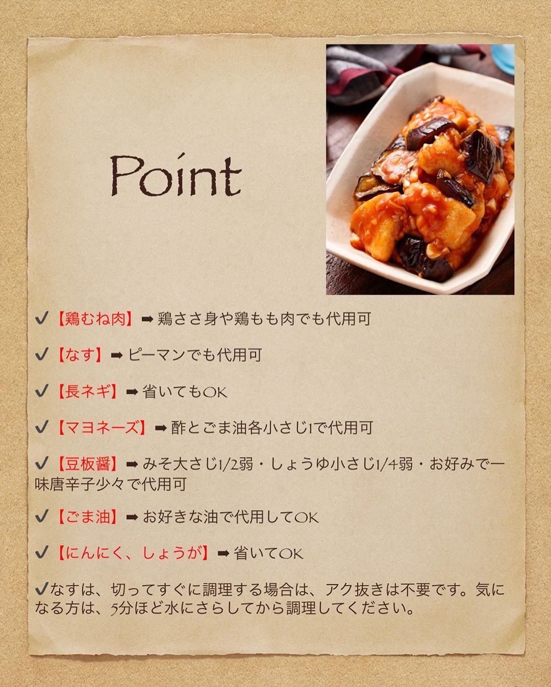 🔻代用食材/調味料/Point🔻