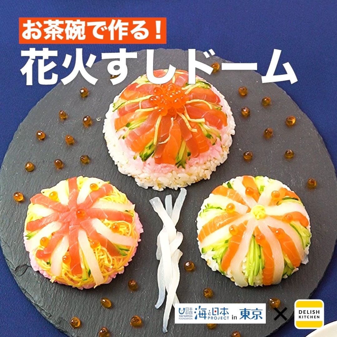 夏の風物詩の花火を手作りお寿司で再現してみました。お好みで具材の組み合わせを変えることで自分だけのオリジナル花火すしを作ることができます!黒いお皿などに盛るとより花火らしくなりますよ♪