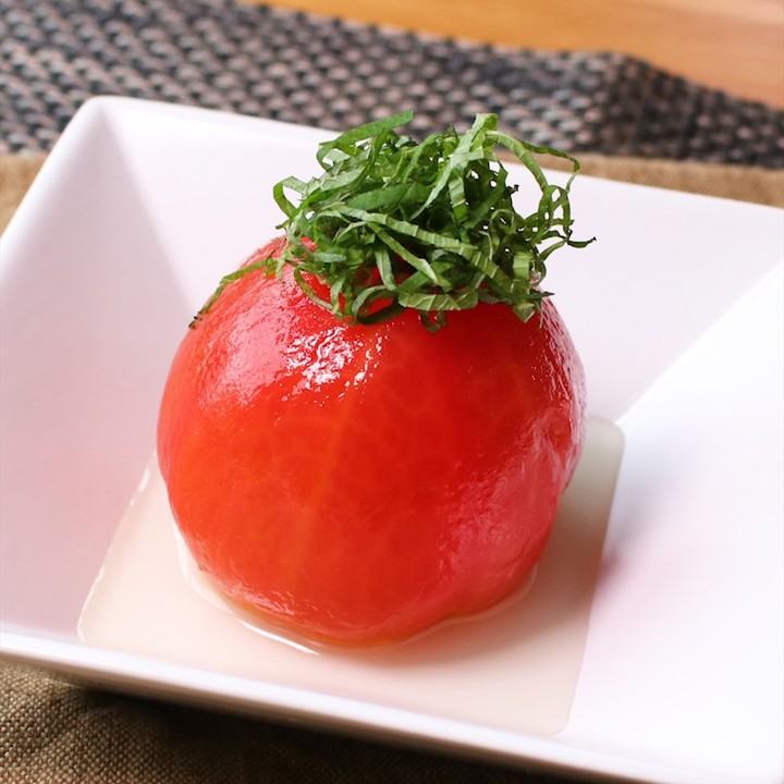 暑い日に食べたくなる冷やしトマトをおいしくアレンジした、まるごと出汁トマトのレシピです。トマトに染みこんだ出汁が、食べた瞬間ジュワーっと溢れ出てきますよ。出汁の材料もシンプルなので、簡単に作ることが出来ます。とてもおいしいので、ぜひお試し下さい。
