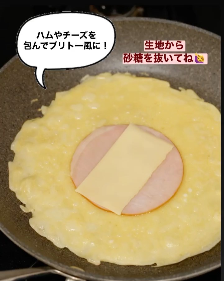 同じ要領でハムとチーズを挟んでブリトー風にしたり、ツナとマヨネーズを乗せて挟んでも美味しいです😊👍