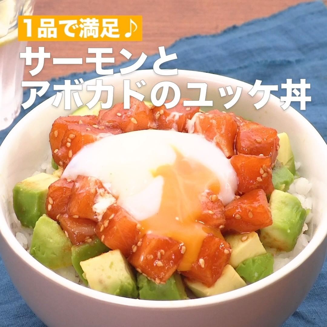 ⑥<1品で満足♪サーモンとアボカドのユッケ丼>