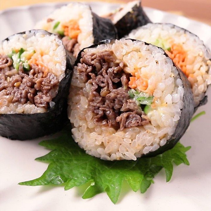 市販の焼肉のタレで簡単!お酒のお供にも嬉しい、しっかりした味付けのボリューム満点、韓国風太巻きのレシピです。ごま油の香ばしい香りが食欲そそります。切らずにそのまま、恵方巻きのようにかじりついても美味しいですよ。