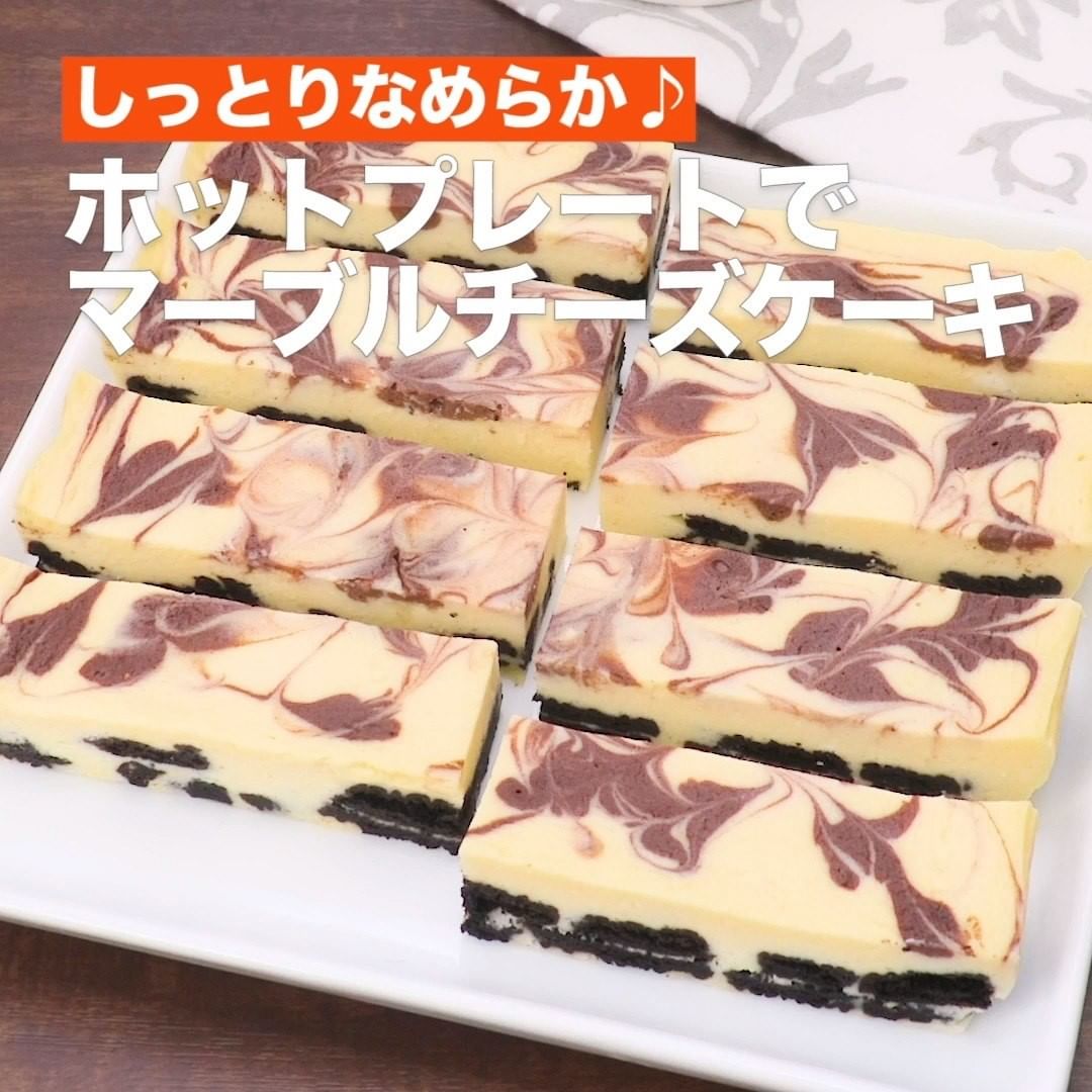 ④<しっとりなめらか♪ホットプレートでマーブルチーズケーキ>