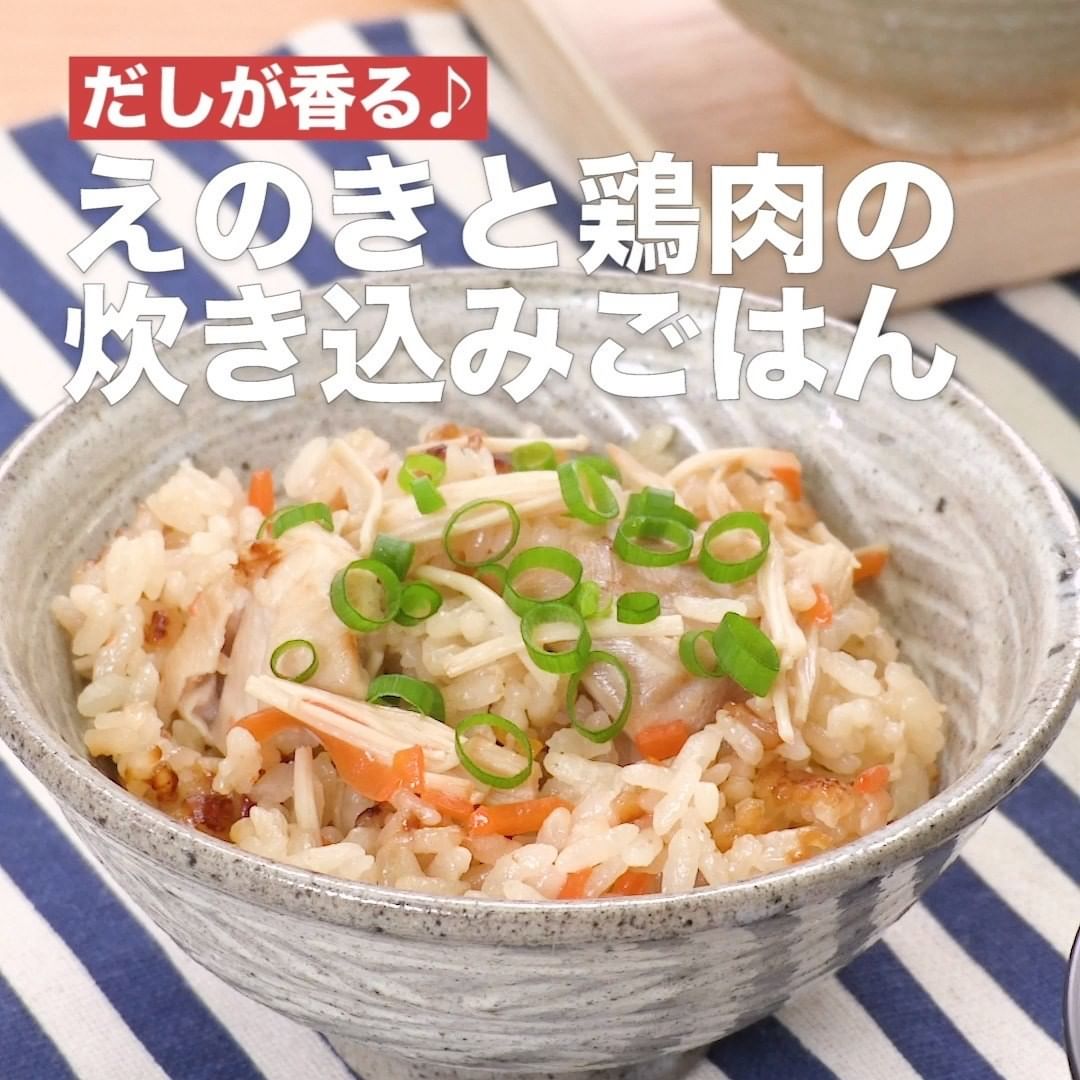 ③<だしが香る♪えのきと鶏肉の炊き込みごはん>