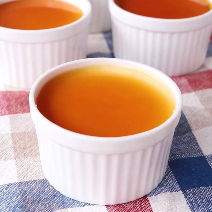 8. 水を入れ混ぜ合わせたらプリンへかけて完成です。