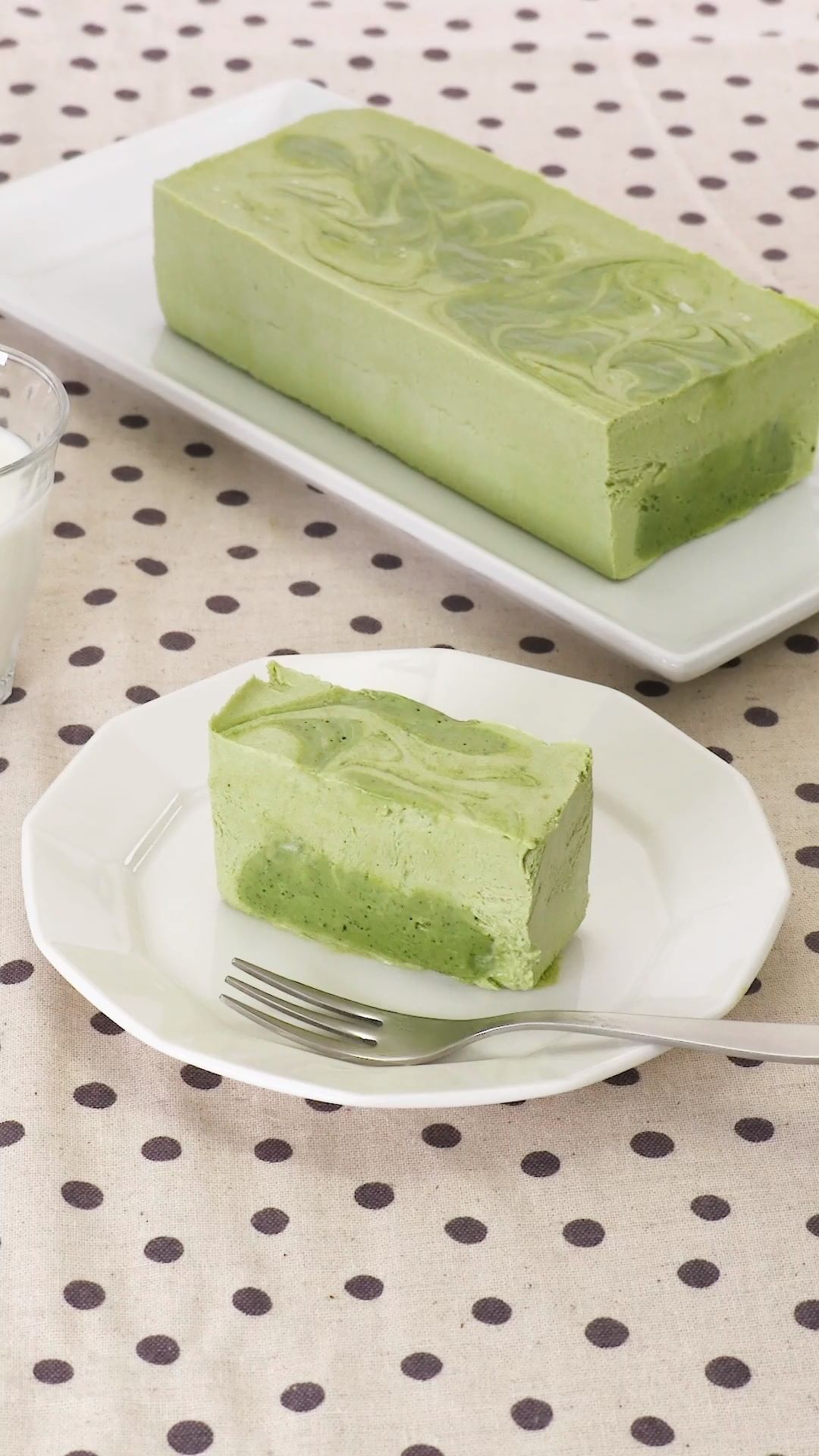 抹茶がアクセントになってペロリと食べられます!型がなくても作ることができるのが嬉しいポイント!生クリームをたっぷり使っているのでとっても濃厚でなめらかな口当たりです♪