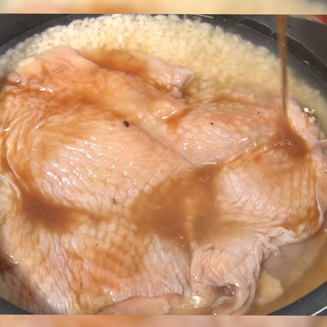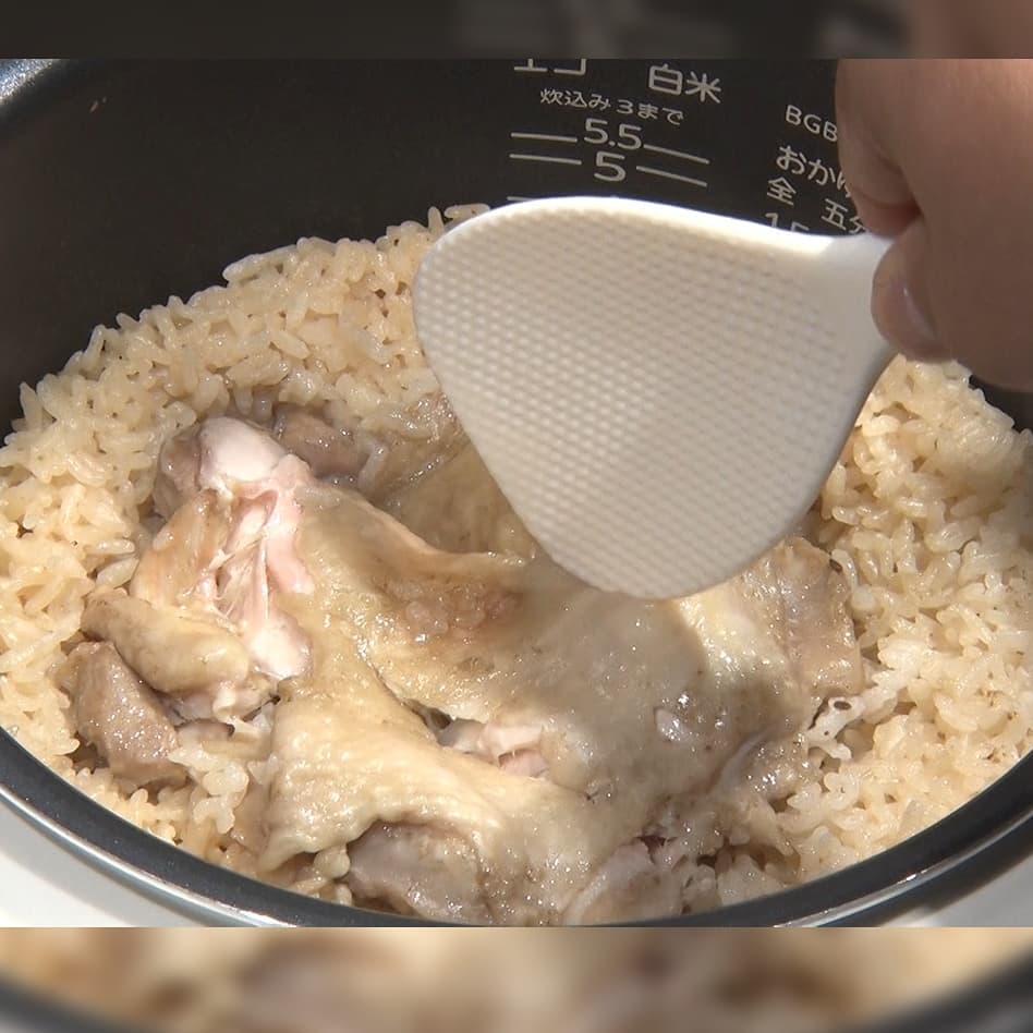 ④ご飯の上に鶏肉をタレごと入れて炊く
