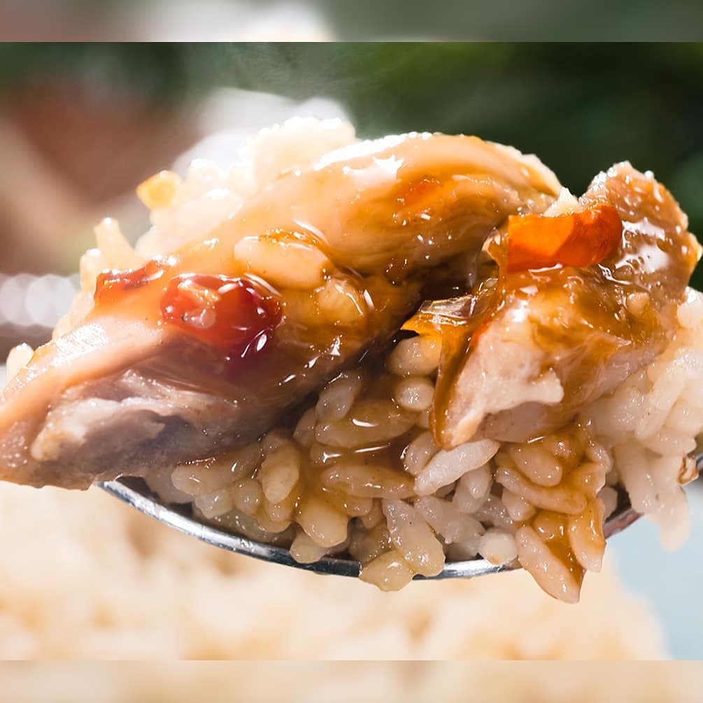 ⑥ご飯の上に鶏肉をのせソースをかければ完成!
