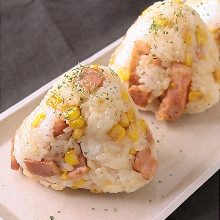 『ガリバタ炒めで コーンとベーコンのおにぎり』