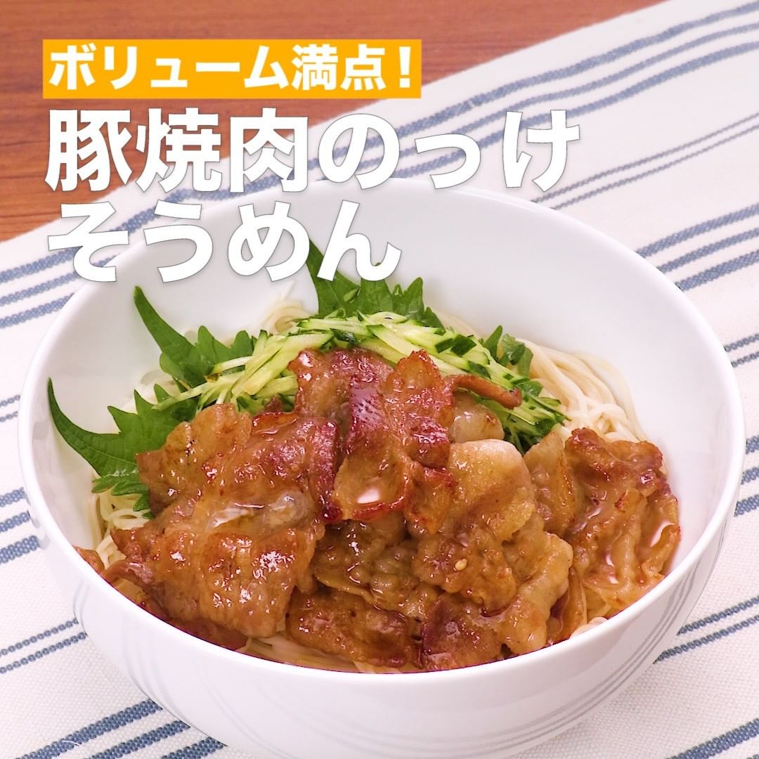 マンネリしがちなそうめんを、がっつり食べ応えのある一品にアレンジ!しっかり味をつけたこんがり豚焼肉をどかんと乗せて、甘酸っぱいたれでいただきます。簡単にできるのにお箸が止まらないおいしさです♪