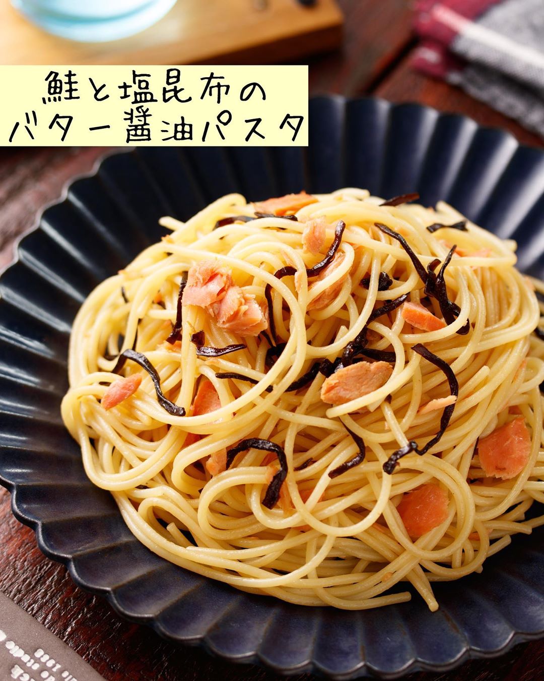 「鮭と塩昆布のバター醤油パスタ」🍝