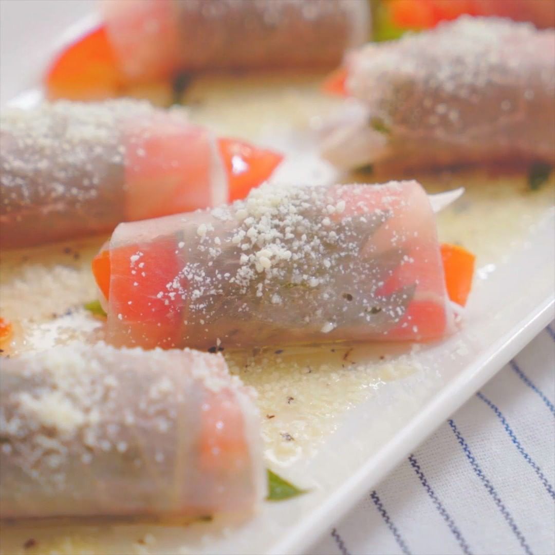 ①『簡単一口サラダ!生ハム大葉ロール』