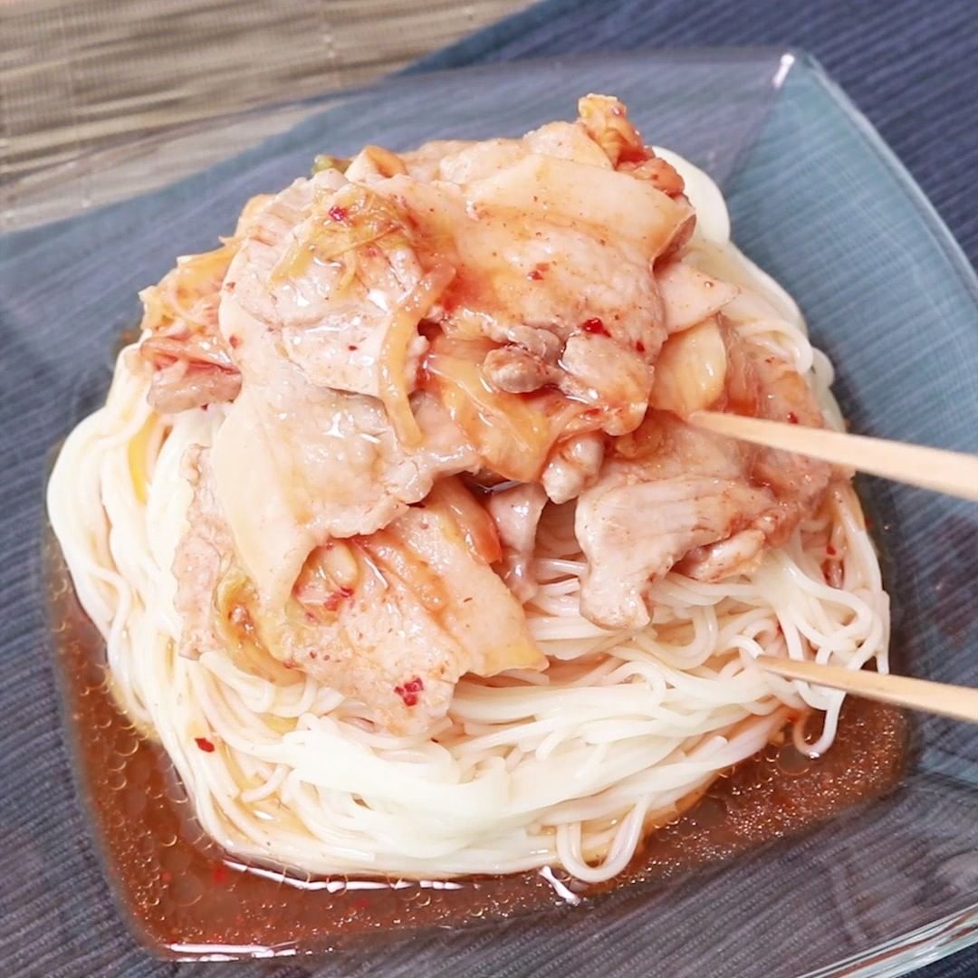 ②『スタミナ満点 ピリ辛豚キムチそうめん』