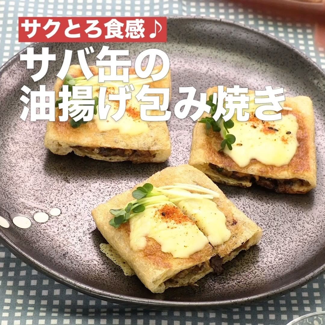 ⑧<サクとろ食感♪サバ缶の油揚げ包み焼き>