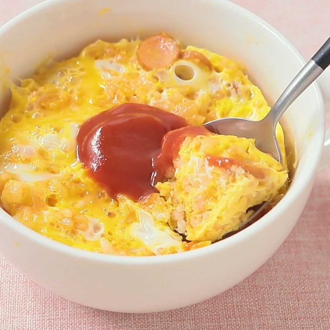 マグカップがあれば簡単に作れるオムライスはいかがでしょうか。電子レンジで加熱するだけでささっとすぐに作れる一品です。朝食や、ランチにおすすめです。お好みの具材を加えてアレンジしてみてください。ぜひお試しください。
