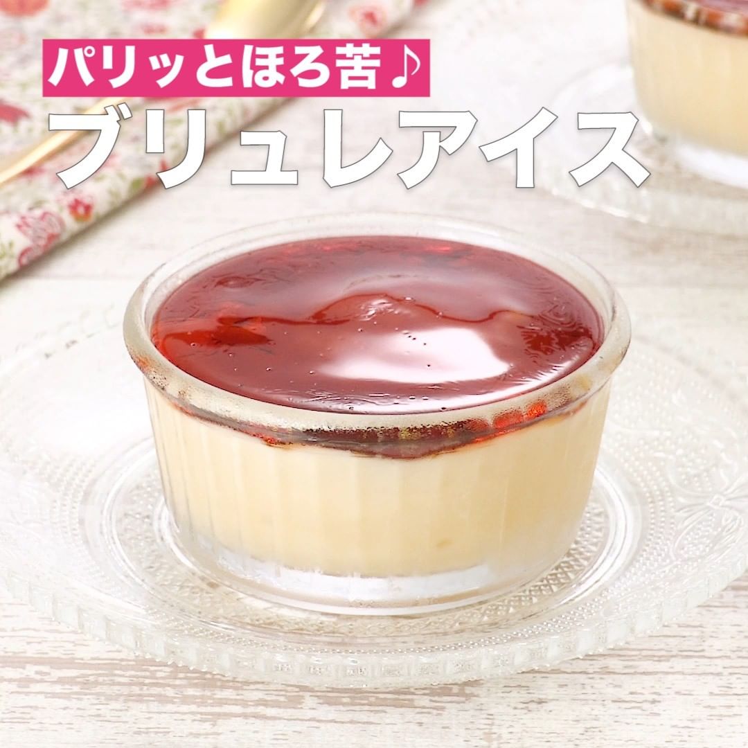 材料4つ、レンジで作れる自家製アイスにカラメルソースをかけて固めた贅沢アイス!パリッとカラメルがくせになります♪