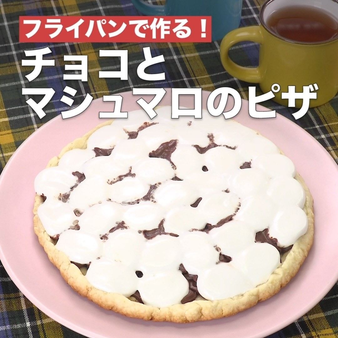 ①<フライパンで作る!チョコとマシュマロのピザ>