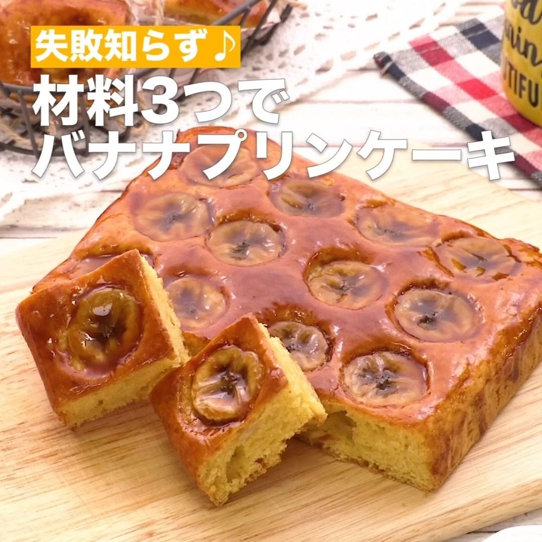⑦<失敗知らず♪材料3つでバナナプリンケーキ>