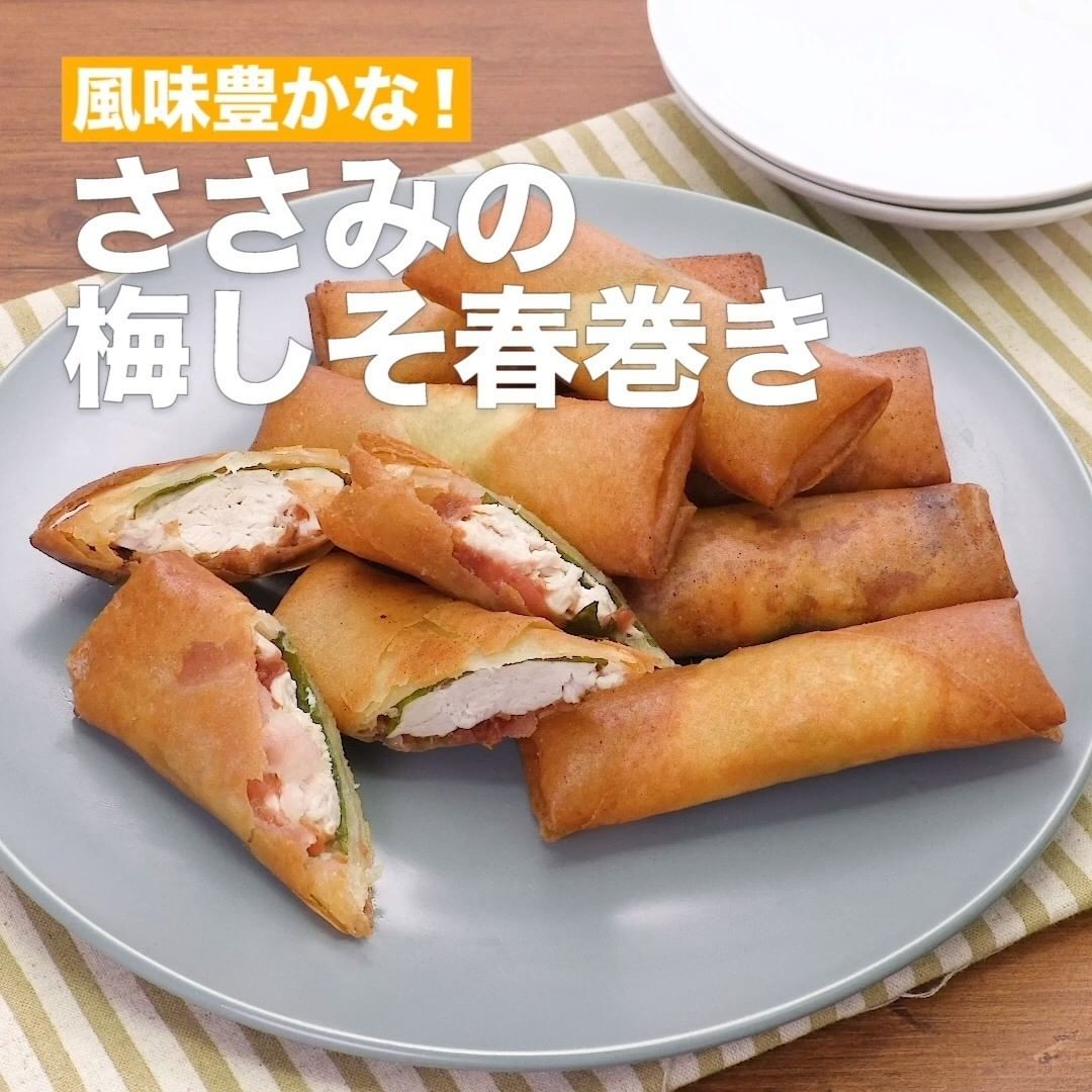 ⑤<風味豊かな!ささみの梅しそ春巻き>