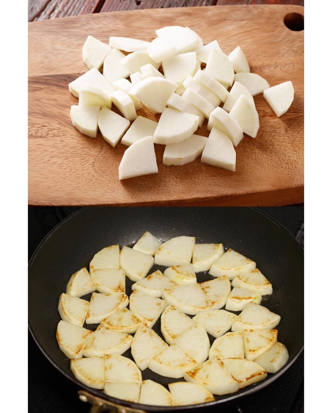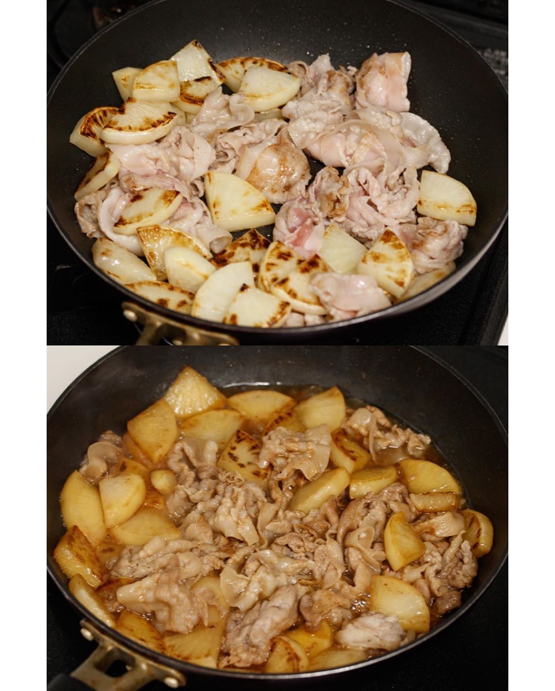 2️⃣《大根を焼いて豚肉を加える》