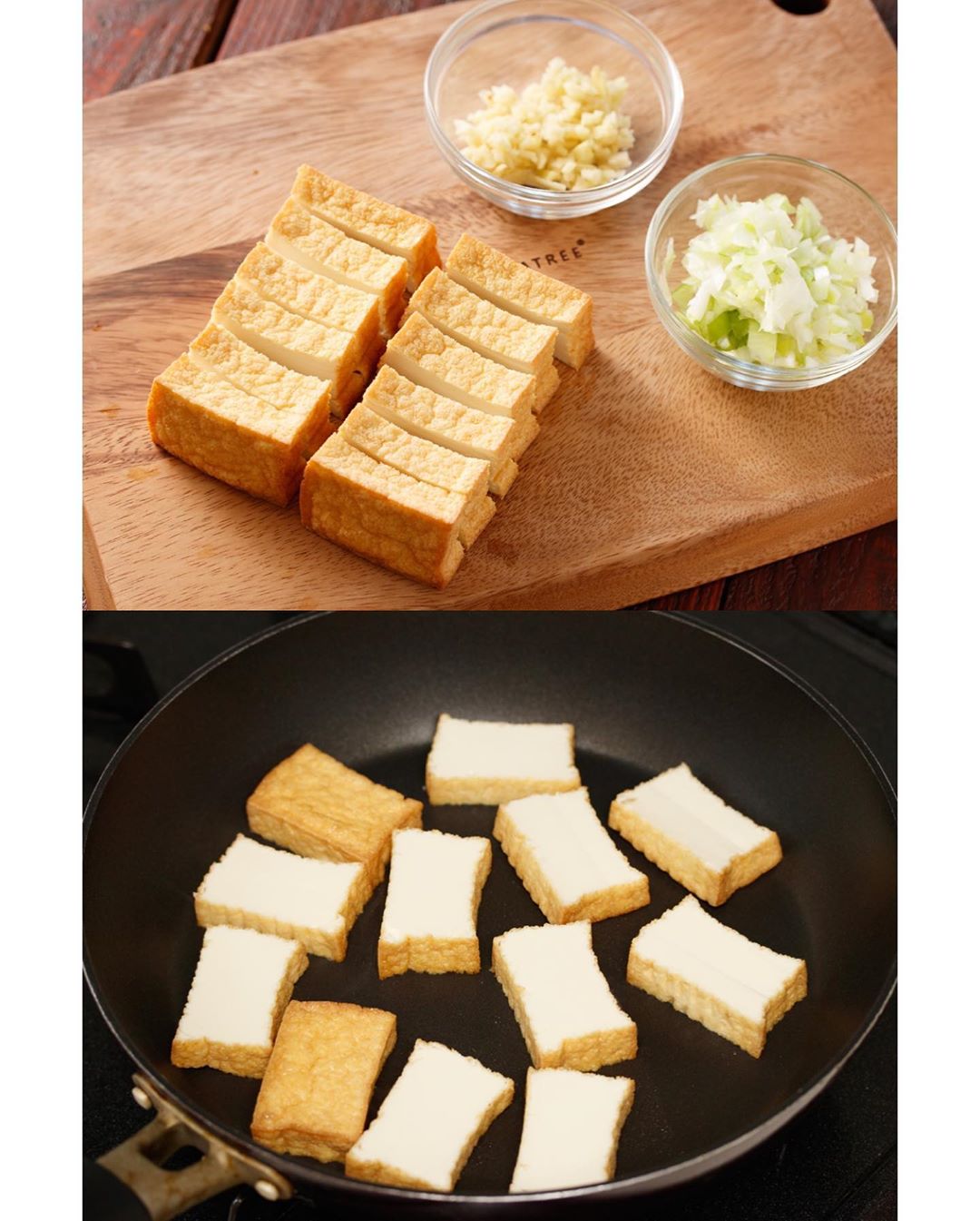 1️⃣《厚揚げを切る》