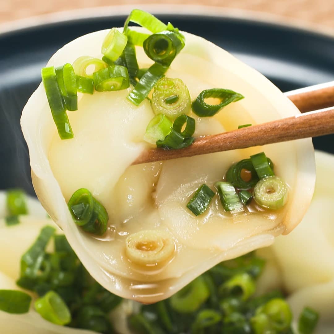 ③ポン酢とオリーブオイルを1:1で入れ、小ネギをたっぷり加えて混ぜタレを作る