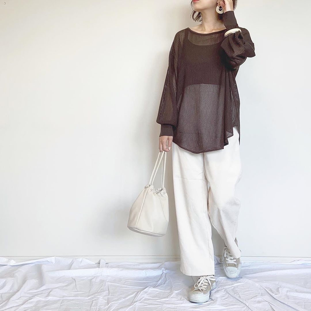 ライトコーデュロイストレートパンツコーデをPick up!薄手のコーデュロイ生地のストレートパンツ✨秋らしさも感じつつ、軽やかに着こなせる旬ボトムス👌素材感のしっとり感と、シアーセーターとの合わせ技で、大人なトレンドスタイルの完成ですね👏カラーのバランスも、とっても素敵です😘