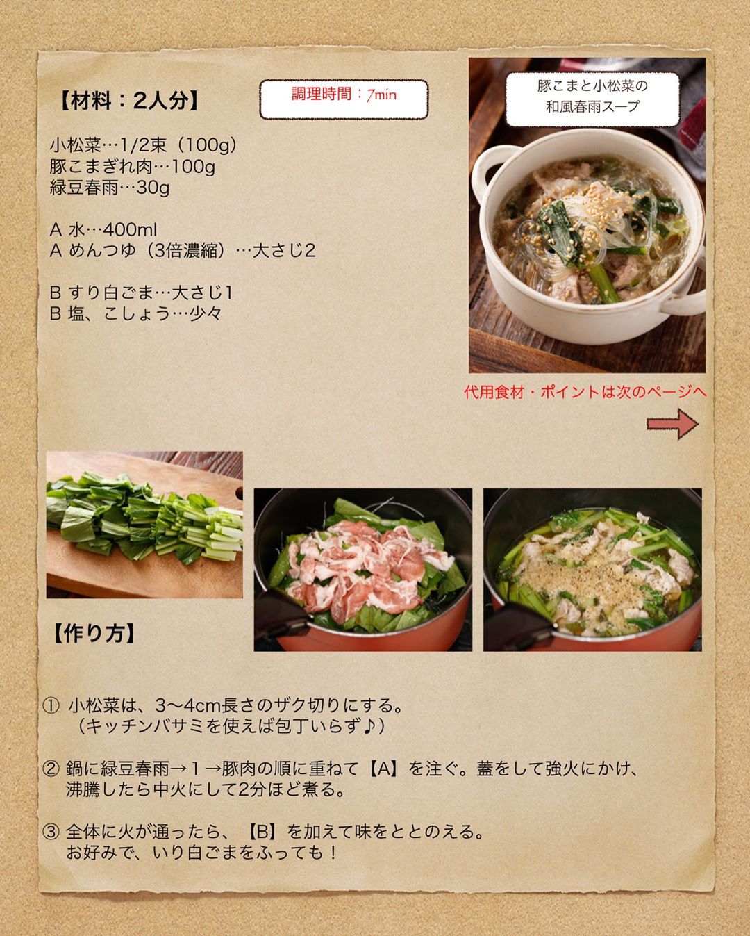#豚こまと小松菜の和風春雨スープ