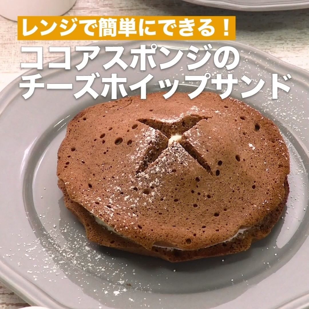 ⑨<レンジで簡単にできる!ココアスポンジのチーズホイップサンド>