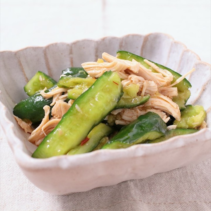 『ごま油香る叩ききゅうりと鶏ササミの簡単和え』