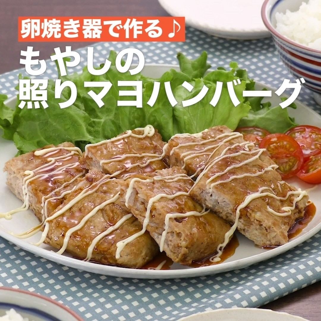 ⑤<卵焼き器で作る♪もやしの照りマヨハンバーグ>