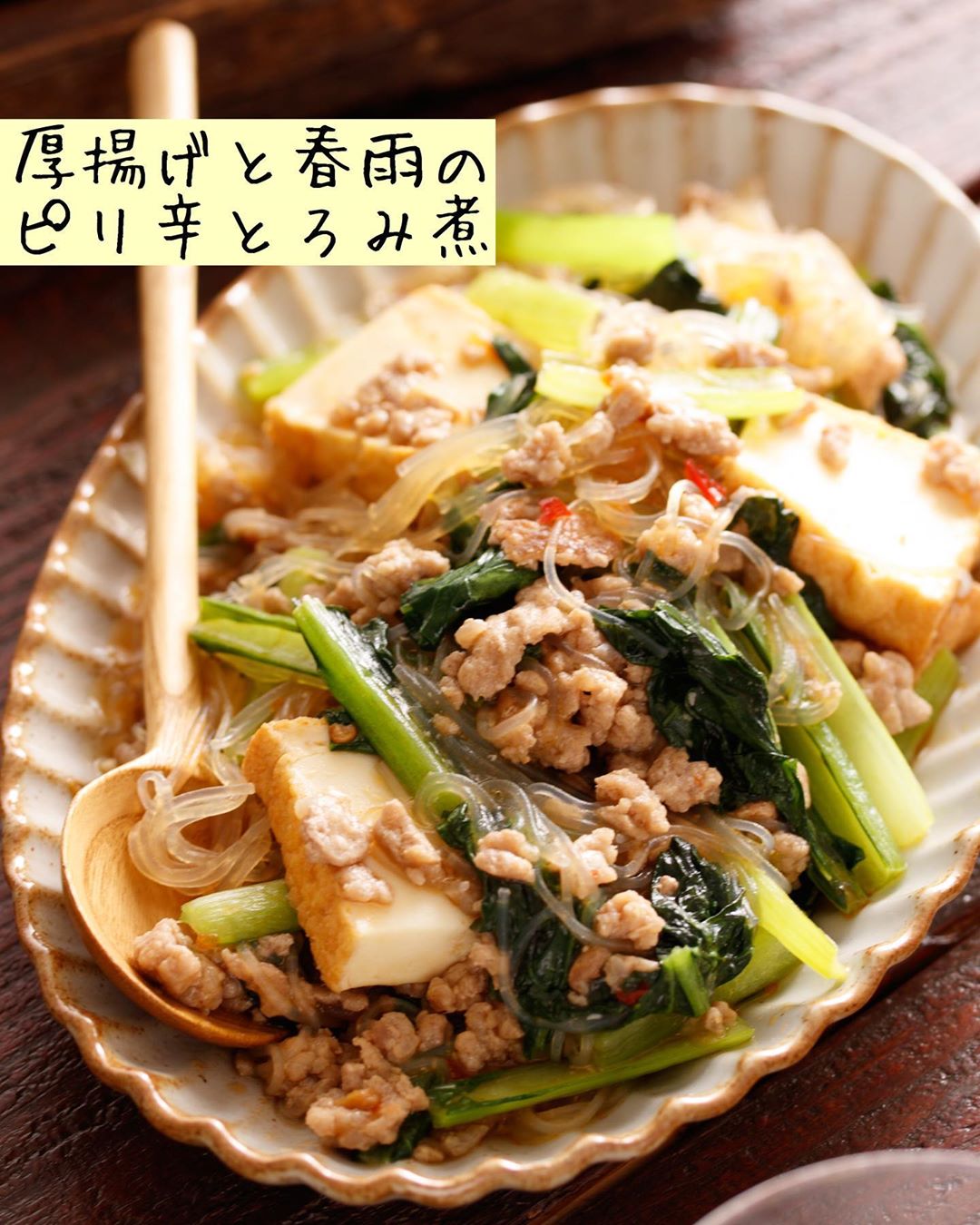 「 #厚揚げと春雨のピリ辛とろみ煮」