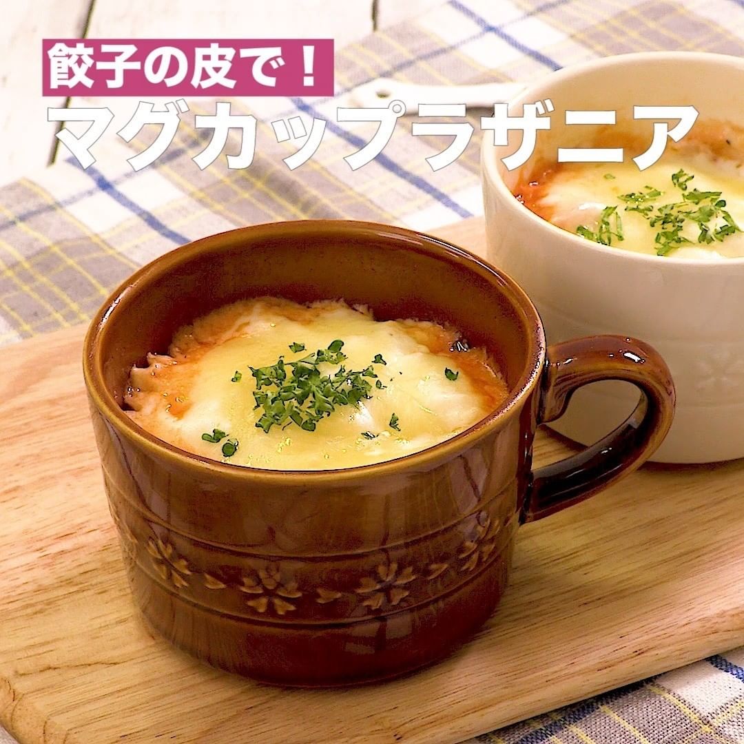 ④<餃子の皮で!マグカップラザニア>