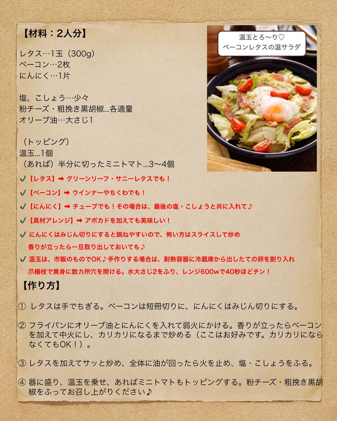 温玉とろ〜り♡ #ベーコンレタスの温サラダ