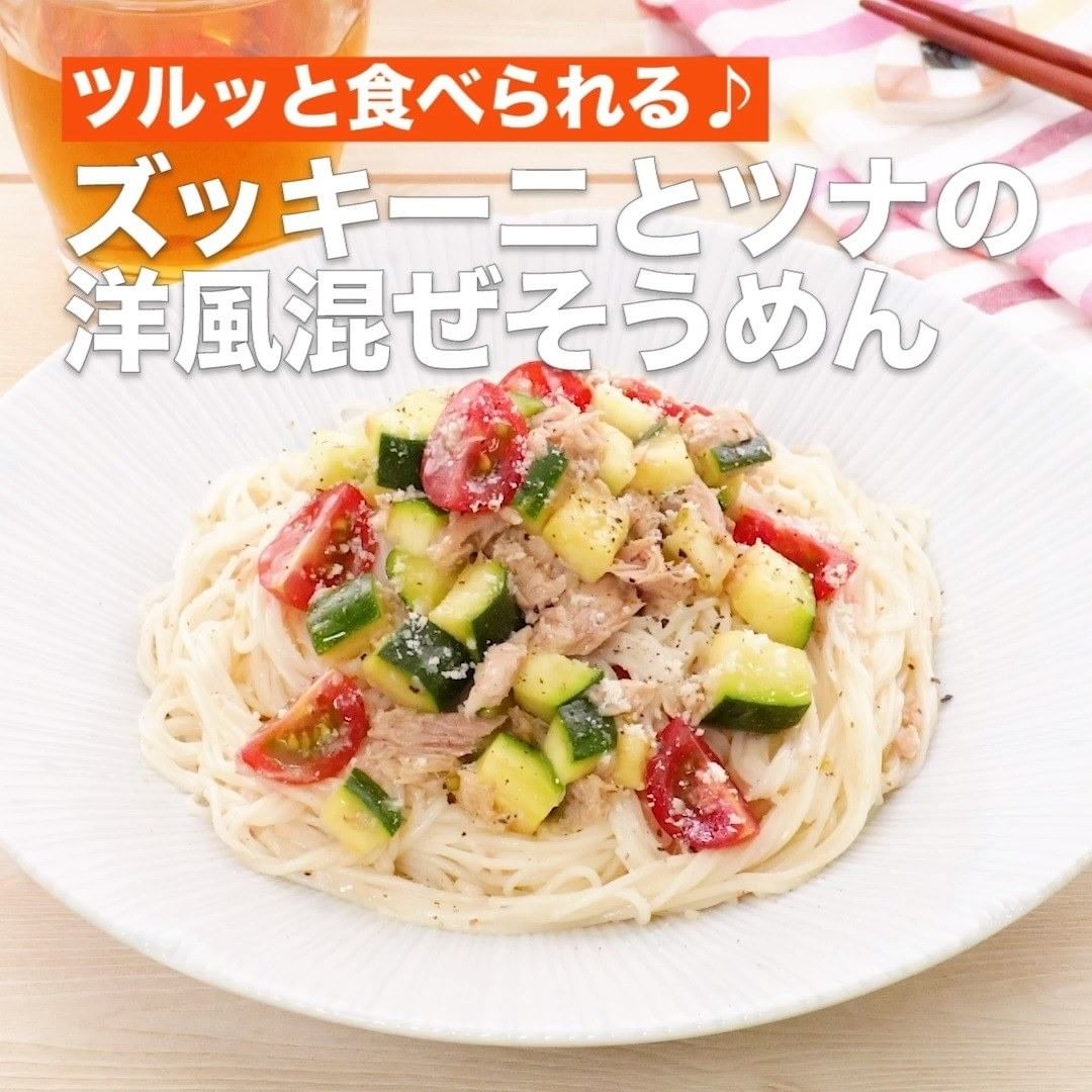 ③<ツルッと食べられる♪ズッキーニとツナの洋風混ぜそうめん>