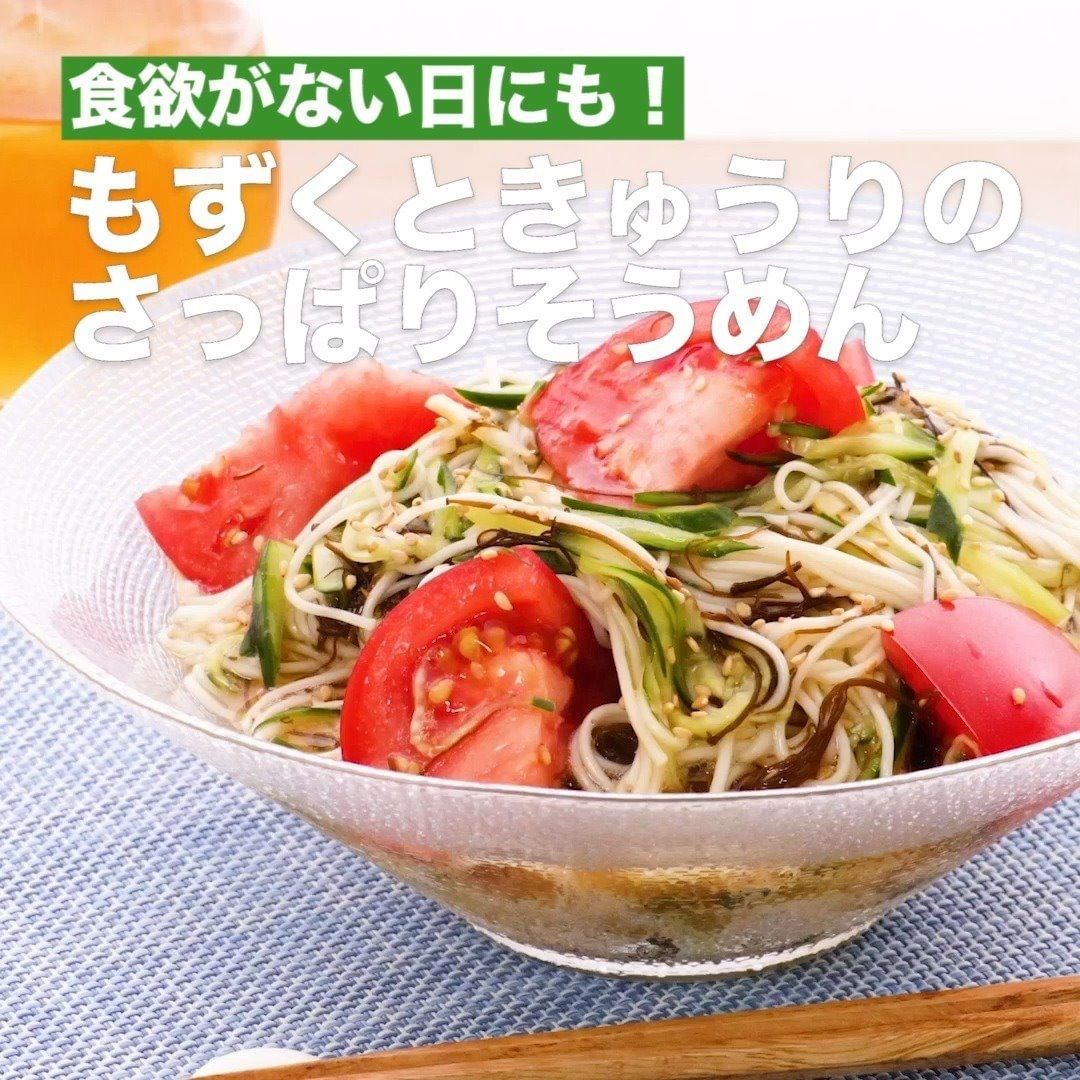 ①<食欲がない日にも!もずくときゅうりのさっぱりそうめん>