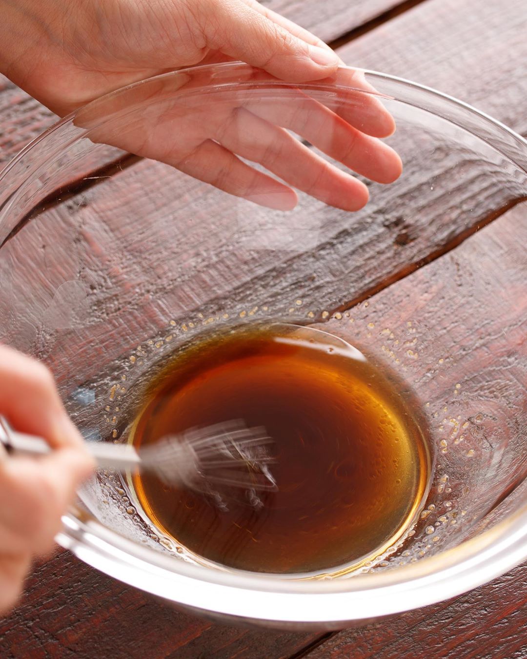 A めんつゆ(3倍濃縮)、ポン酢、ごま油…各大さじ1