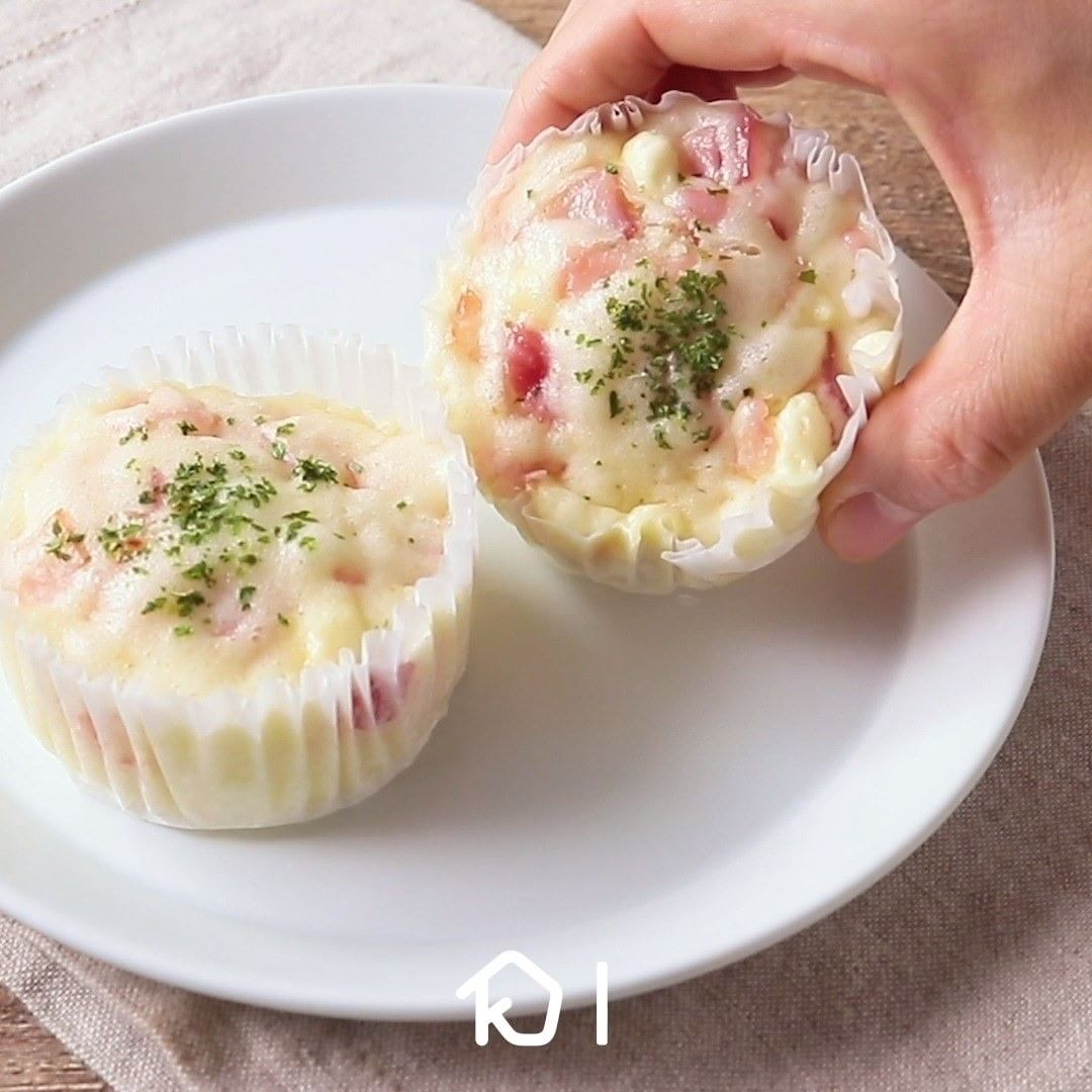 ①『電子レンジで簡単 ベーコンとチーズの蒸しパン』