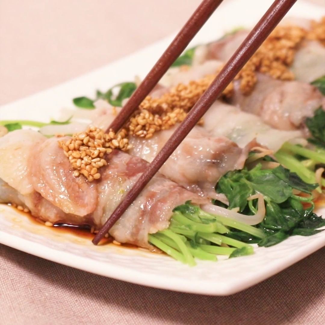 ③『レンジで!もやしと豆苗の豚巻きレンジ蒸し』