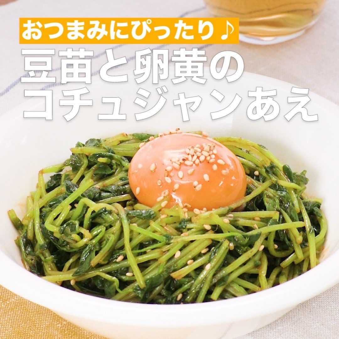 卵黄のコクとコチュジャンの辛味がたまらない一品です!豆苗はさっとゆでてシャキシャキの食感を残しましょう。簡単なのでもう一品欲しい時に重宝します。ぜひお試しください。