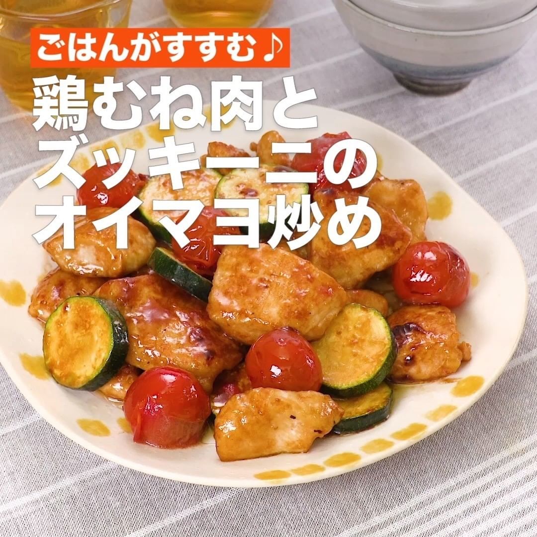 ②<ごはんがすすむ♪鶏むね肉とズッキーニのオイマヨ炒め>