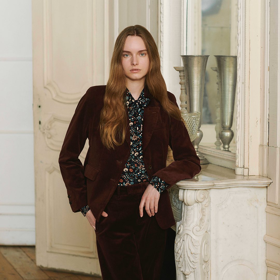 Our beautiful tie neck blouse made with smooth fabric from our Ines de la Fressange collaboration collection.