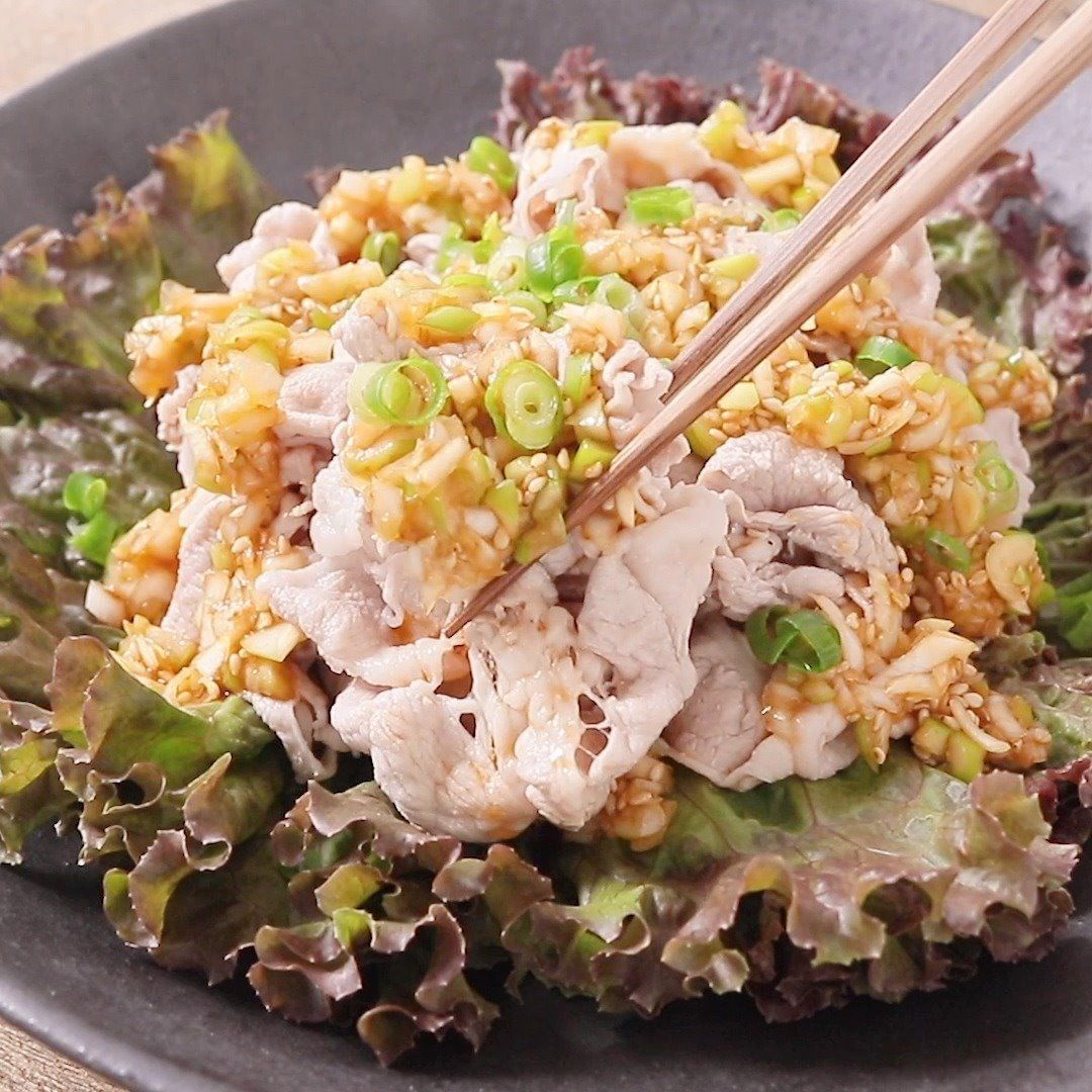 辛味が効いたよだれ鶏風のタレでいただく、豚しゃぶのご紹介です。たっぷりねぎの旨味ダレが豚肉にしっかりと絡み、とてもおいしくいただけます。ごはんのおかずにはもちろん、お酒のおつまみにもぴったりです。ぜひお試しくださいね。