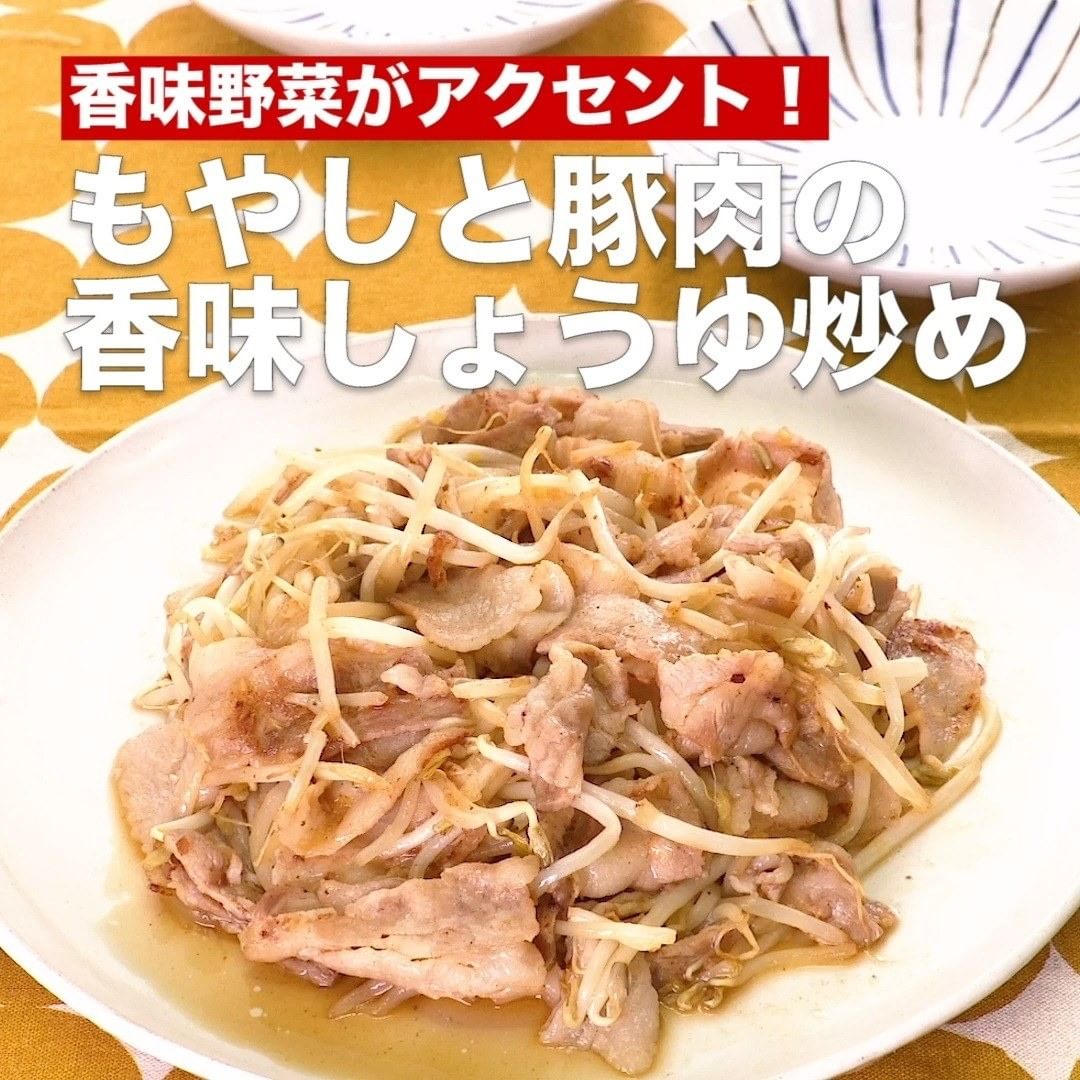 ⑧<香味野菜がアクセント!もやしと豚肉の香味しょうゆ炒め>