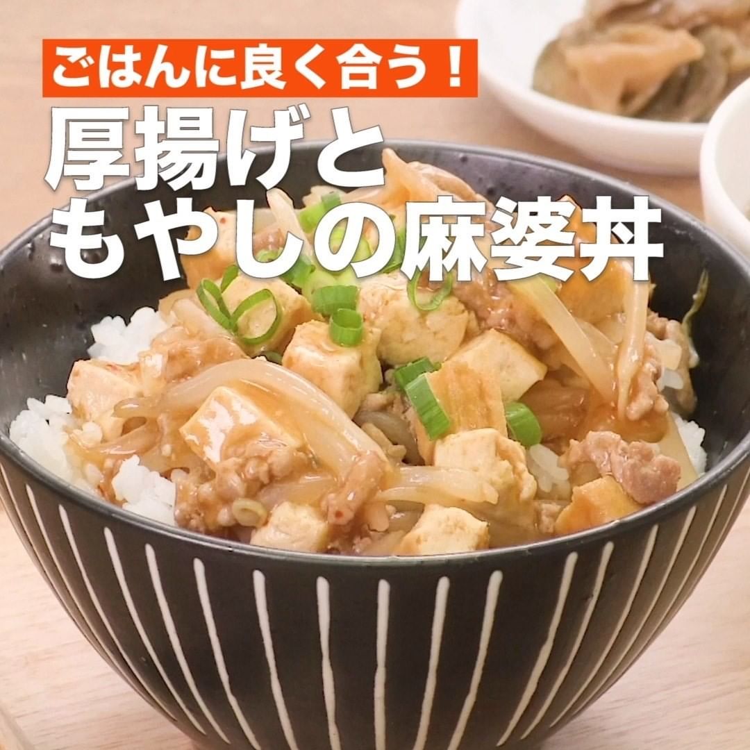 ⑤<ごはんに良く合う!厚揚げともやしの麻婆丼>